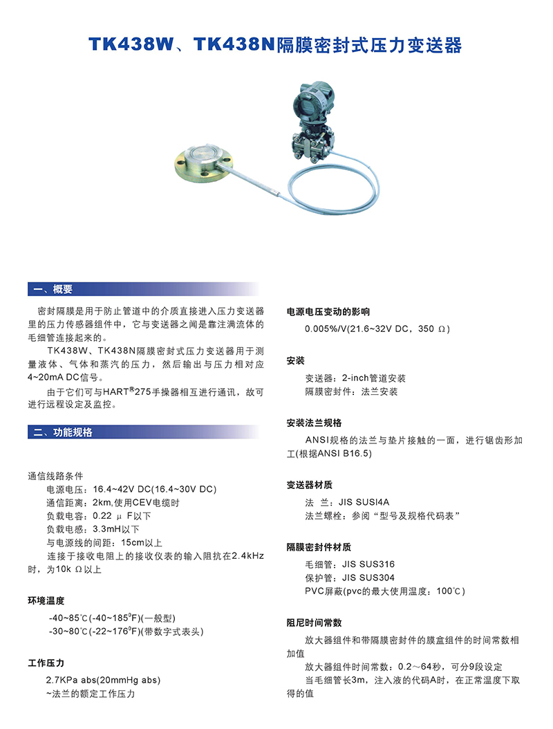 - 產(chǎn)品名稱:438W、438N隔膜密封式壓力變送器