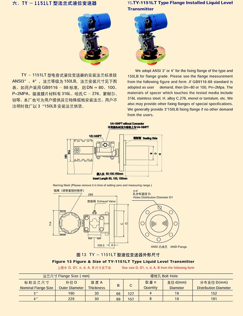 - 產(chǎn)品名稱:TY-1151LT型法蘭式液位變送器