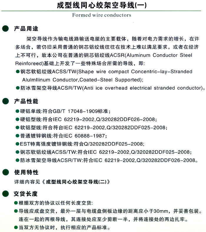 - 產(chǎn)品名稱:成型線同心絞合架空導線