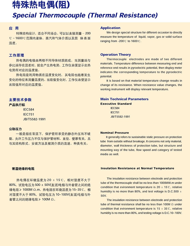 - 產(chǎn)品名稱:特殊熱電偶(阻)
