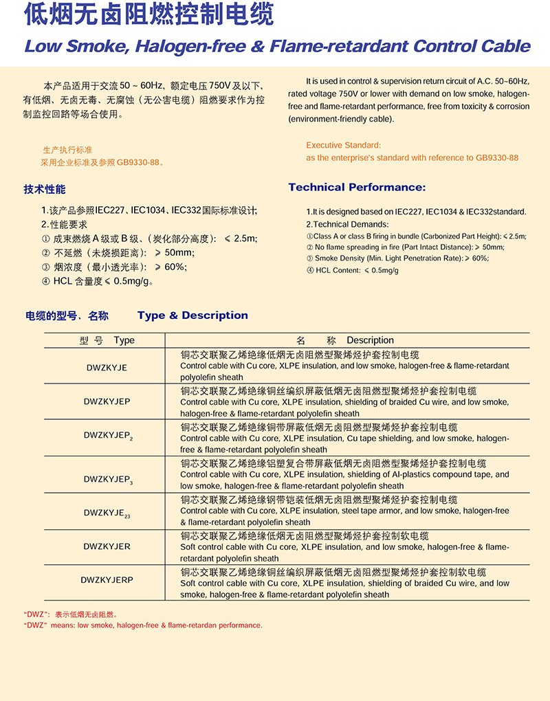 - 產(chǎn)品名稱:低煙無鹵阻燃控制電纜
