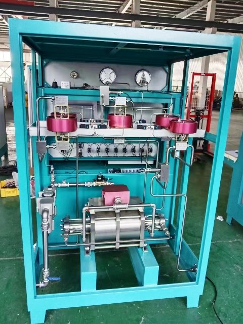 本設(shè)備是高壓設(shè)備,因此本設(shè)備的操作人員在使用該設(shè)備前應(yīng)接受培訓(xùn),包括工作原理、日常操作、日常保養(yǎng)、安全注意事項。氣密封試驗裝置是采用氣動增壓技術(shù),參考API6A、API16A及API16C等相關(guān)行業(yè)執(zhí)行標(biāo)準(zhǔn)設(shè)計,用于井口裝置、采油(氣)樹、防噴器、節(jié)流和壓井管匯等石油機械的氣密封試驗。采用壓縮空氣或氮氣作為試壓介質(zhì),可實現(xiàn)2MPa、35MPa、75MPa、105MPa、140MPa、210MPa等不同壓力等級的氣密封試驗。所有管路、閥門均采用不銹鋼材質(zhì),全部高壓管路采用無焊接,錐面硬密封,可反復(fù)拆卸。密封可靠。所有高壓閥門、管路、接頭額定工作壓力均超過試驗壓力的1.5倍,最大限度地保證設(shè)備安全。實驗流程可以根據(jù)API標(biāo)準(zhǔn)由客戶設(shè)定,試驗數(shù)據(jù)和報告均滿足API標(biāo)準(zhǔn)。